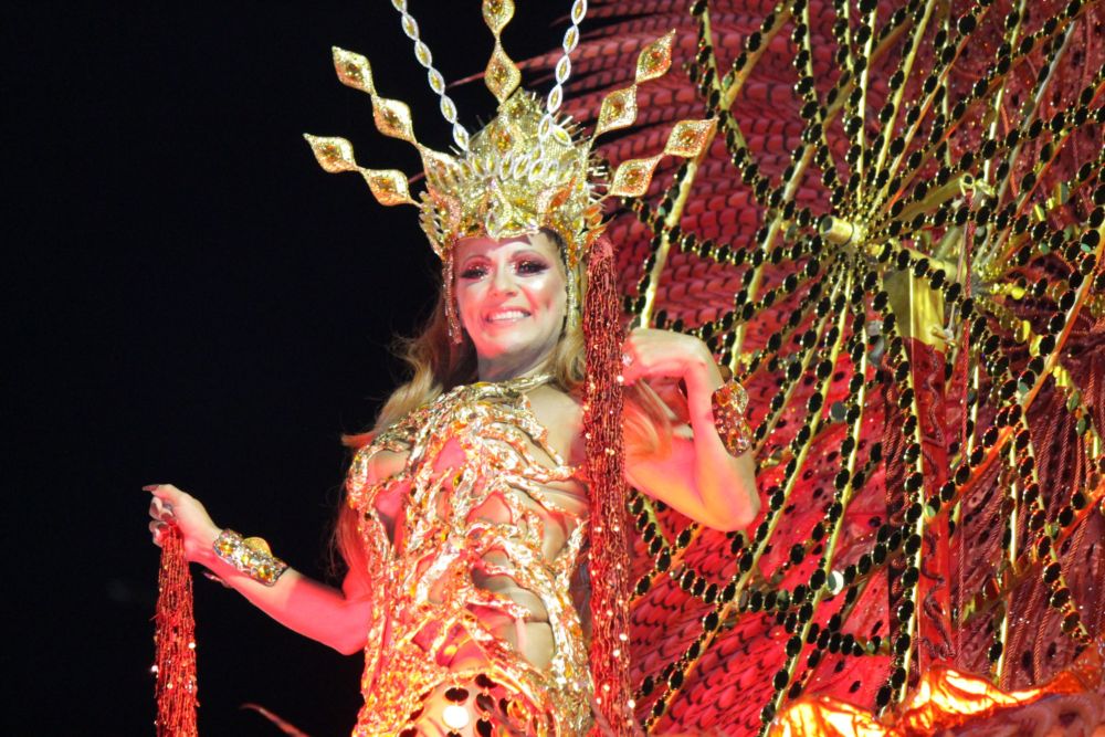 A empresária Thaís Moreira, destaque central de luxo do carro abre alas da Escola de Samba Acadêmicos do Tucuruvi do carnaval de São Paulo, desfilou a maravilhosa fantasia “A energia do Sol da Criação” confecciona por Dione Leite, também carnavalesco da agremiação. A luxuosa fantasia com muitos recortes que deixou as curvas da beldade a mostra, foi produzida com milhares de penas ornamentais em seu costeiro, além de decoração com cristais Swarowski e muitas moedas douradas, tendo como inovação sua peça central giratória representando o sol… Foi um espetáculo a parte!